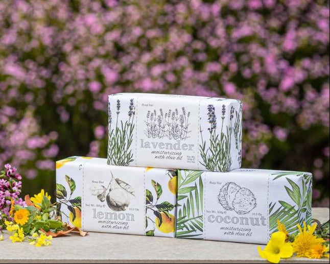 Pairs pairs olive oil with three timeless natural ingredients: lemon, lavender and coconut.